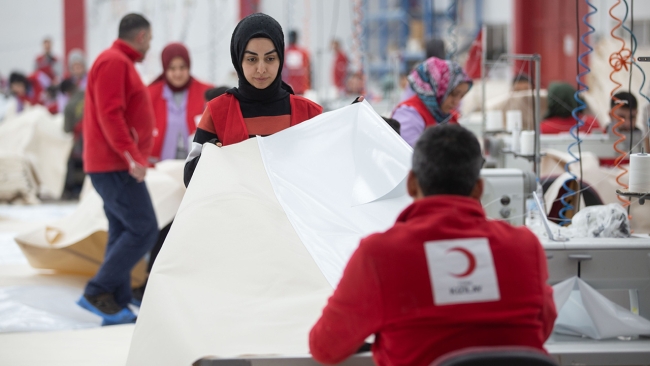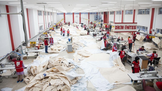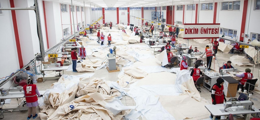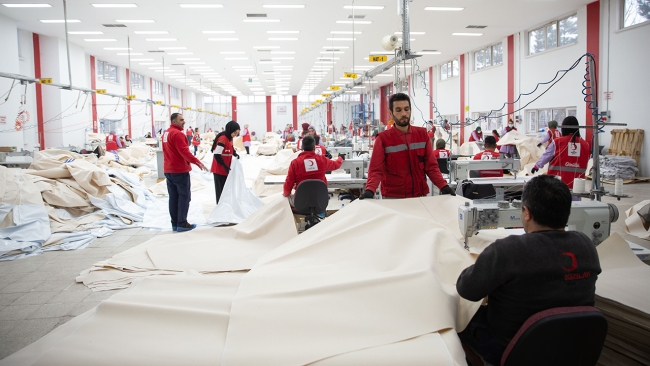 Türk Kızılayın Etimesgut Yerleşkesi'nde 70 yıldır afet çadırı üretimi yapılan Çadır Tekstil bölümünde, AFAD'ın geçtiği siparişler üretiliyor.