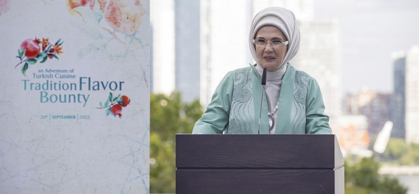 Emine Erdoğan, "Soframızda yabancının yeri, her zaman 'Tanrı misafiri' olarak ayrılmıştır. Emsalsiz ikram kültürümüz, misafiri baş üstünde tuttuğumuzu anlatır. Kısacası sofralarımız cömertliğin, paylaşmanın, dayanışmanın, insan sevgisinin ve yaşam kültürümüzün özetidir." ifadelerine yer verdi.