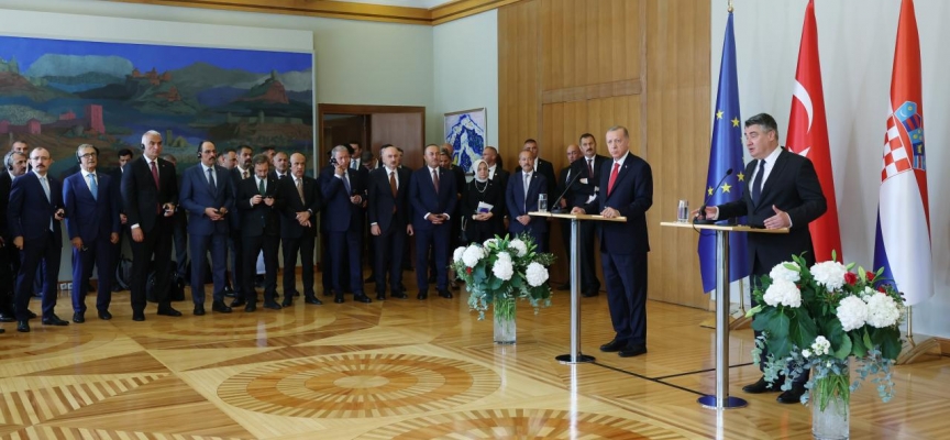 Cumhurbaşkanı Erdoğan ve Hırvatistan Cumhurbaşkanı Milanovic, baş başa ve heyetler arası görüşmelerin ardından iki ülke arasındaki anlaşmaların imzalandığı törene katıldı.