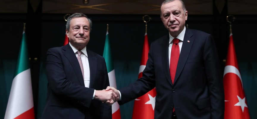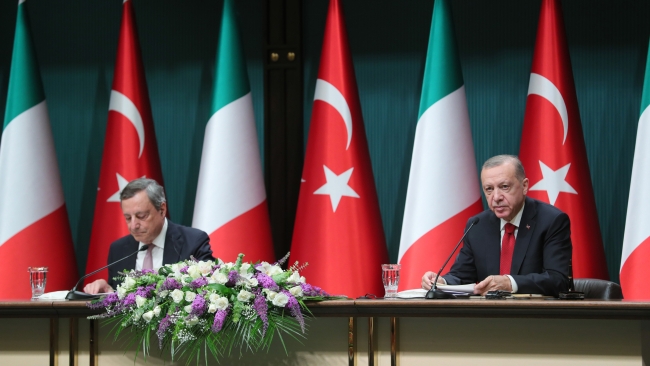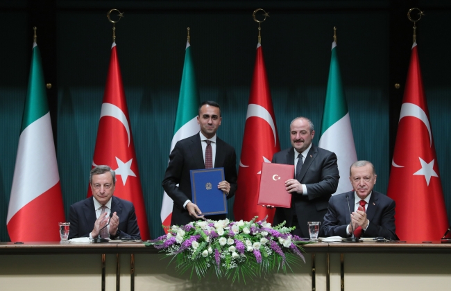 Cumhurbaşkanı Erdoğan ve İtalya Başbakanı Draghi'nin başkanlığındaki Hükümetlerarası Zirve Oturumunun ardından Cumhurbaşkanlığı Külliyesi'nde iki ülke arasındaki anlaşmaların imza törenine geçildi.