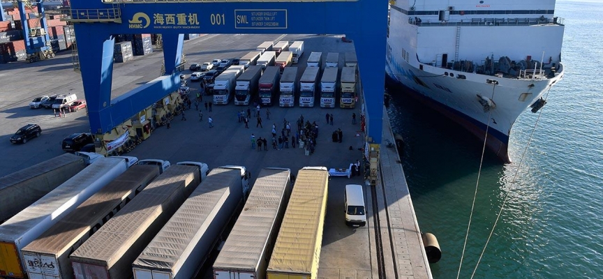 Türkiye'den Lübnan'a insani yardım malzemesi getiren 23 tırı taşıyan gemi, dün Mersin'den törenle uğurlanmıştı.