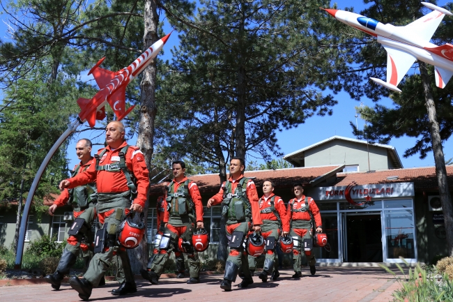 Solo 6 numara da uçan Yüzbaşı Gökhan Esen de gösterinin 45 dakika sürdüğünü belirterek, "Sürekli G kuvvetine (ani hız değişimleri ve manevralar sırasında pilotların maruz kaldığı kuvvet) maruz kaldığımız ve stres altında olduğumuz için çok yorucu uçuş oluyor. Dolayısıyla dinlenmeye özen gösteriyoruz. Evde hobi alanlarında stresi atarak bir sonraki göreve hazırlanıyoruz" ifadelerini kullandı.