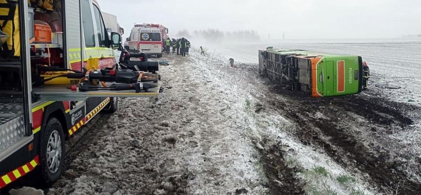 Polonya’nın başkenti Varşova’dan Ukrayna’nın Odessa kentine giden yolcu otobüsü, Ukrayna'nın Hmelnitski kenti yakınlarında şarampole yuvarlandı.