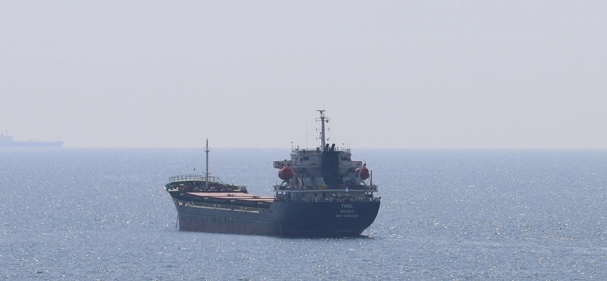 Tahıl sevkiyatı kapsamında Ukrayna'nın Çornomorsk Limanı'ndan yola çıkan 3 bin ton ayçiçeği tohumu yüklü Marşal Adaları bayraklı "Thoe" isimli gemi, Tekirdağ'ın Süleymanpaşa ilçesi açıklarına demirledi.