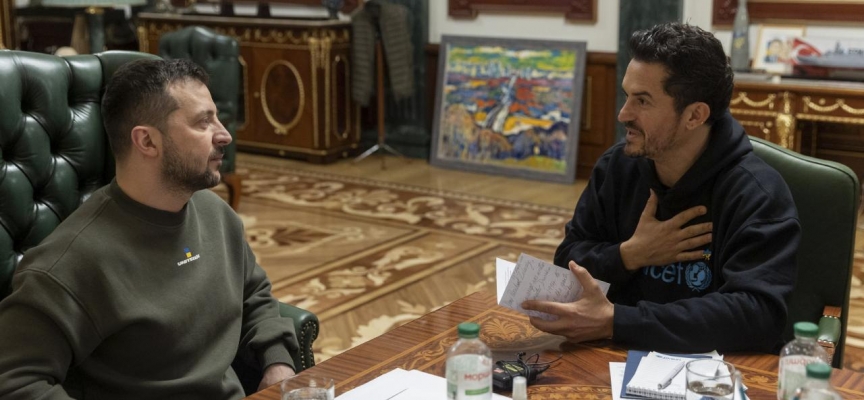UNICEF'in İyi Niyet Elçisi olan Bloom, başkent Kiev'de Ukrayna Devlet Başkanı Vladimir Zelenskiy ile bir araya geldi.