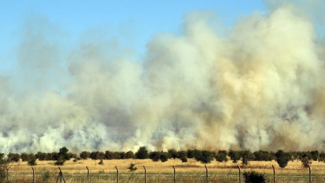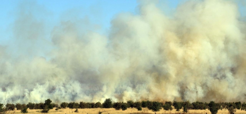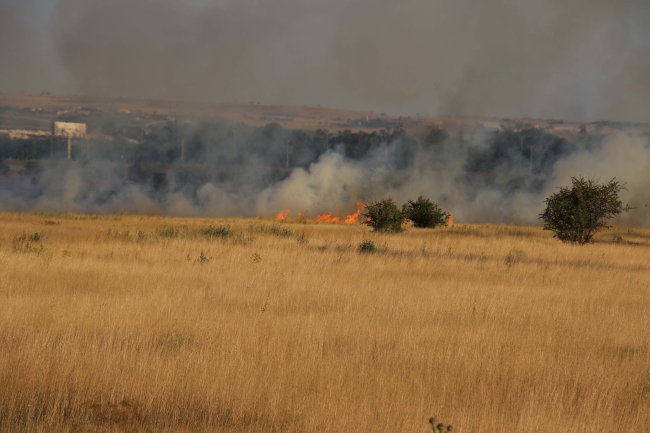 Havalimanı sınırları içerisindeki otluk alanda henüz belirlenemeyen nedenle yangın çıktı.
