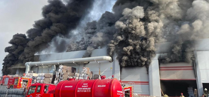 Yoğun duman yükselen fabrikadaki yangının söndürülmesi için çok sayıda ekip çalışma yürütüyor.