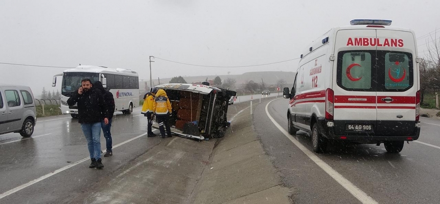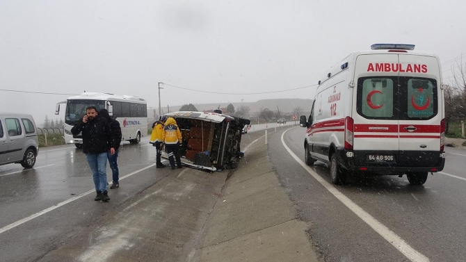 Sivaslı istikametinden kent merkezine doğru seyreden D.A'nın kullandığı minibüs, Cezaevi Kavşağı'nda refüjdeki su kanalına devrildi.