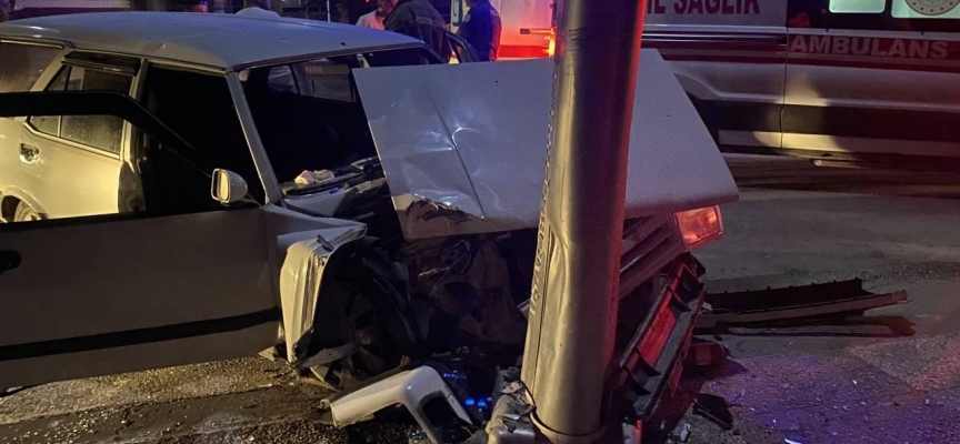 Ankara istikametine giden Ö.Y. yönetimindeki otomobil, Belediye Camisi yakınlarında kaldırımdaki aydınlatma direğine çarptı.