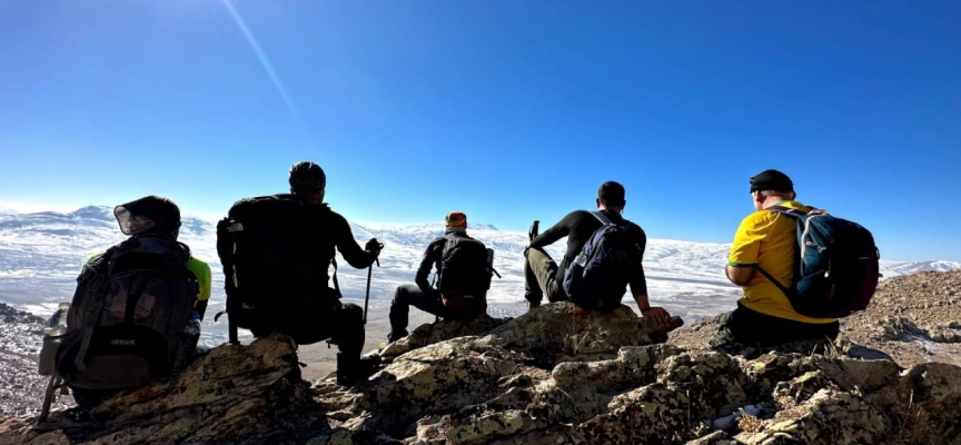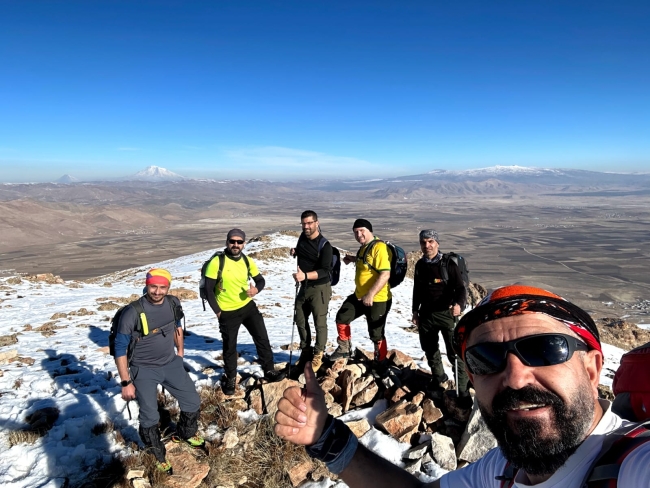 Zirveye ulaşan dağcılar, bir süre burada kaldıktan sonra ilçeye döndü.