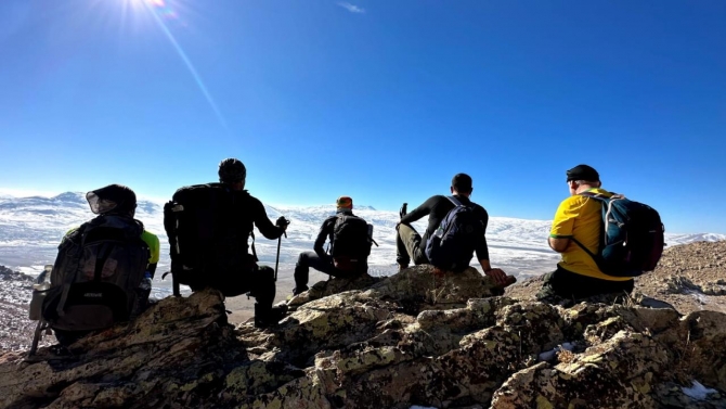 Çaldıran ilçesinde bir araya gelen Vadi Doğa Sporları Kulübü üyesi 6 dağcı, 2 bin 733 rakımlı Alikelle Dağı'nda zirve yapmak için tırmanışa geçti.