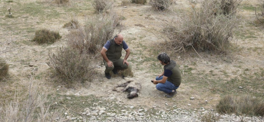 İlçeye yaklaşık 10 kilometre uzaklıktaki Çakınlı Mahallesi kırsalında tarlada çalışan vatandaşlar, su kaynağına yakın noktada bir yaban hayvanın öldüğünü gördü.