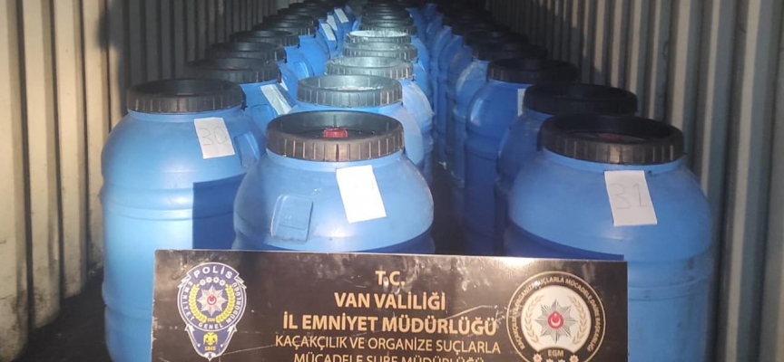 Yapılan aramada, 32 bidon içinde 5 ton 420 litre sahte içki ele geçirildi.