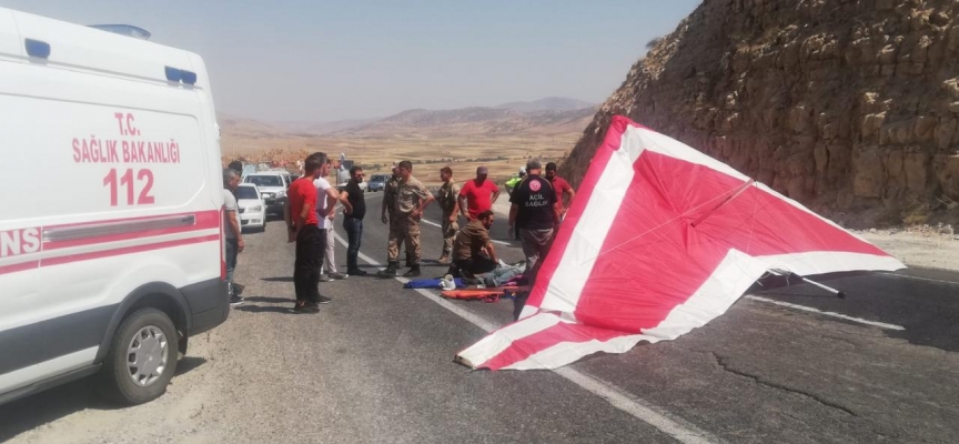 Bir süre havada süzülen ikili, inişe geçtikleri sırada dengelerini kaybederek kara yoluna düştü.