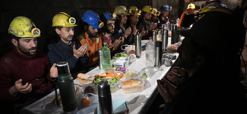 İşçilerden Emin Kara da mesai arkadaşlarıyla madenciliğin geleneklerine uygun birlik ve beraberlik içinde bir ramazan geçirdiklerini belirterek, "Çok anlamlı, duygusal bir ramazan yaşıyoruz. Aynı zamanda hüzünlüyüz. Deprem bölgesinde yaşamış olduğumuz bir hüzün vardı. Geldik, ülkece yaralarımızı sarmaya çalışıyoruz." dedi.