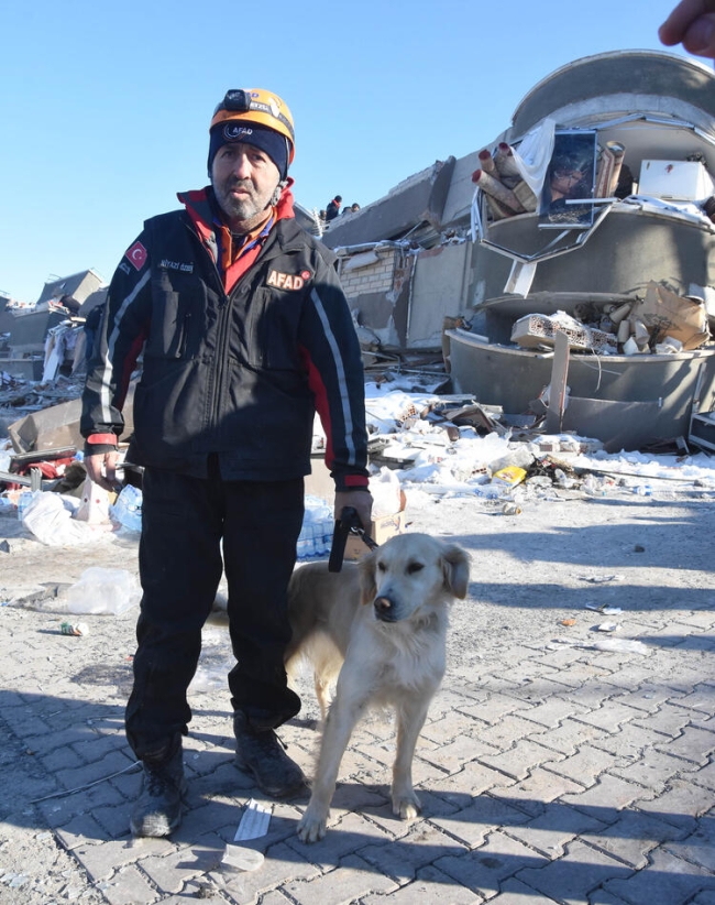 Van'dan gelen AFAD arama köpeği 'Köpük'ün canlı taraması yaptığı Yeşilyurt ilçesi Özalper Mahallesi'ndeki Hayat Sitesi'nde bir canlı tespit edildi.