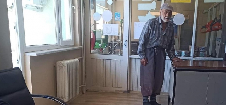 Kooperatif çalışanları Rafet Burukoğlu'nun ayakkabılarını giydirdikten sonra alışverişini tamamlamasına yardım etti.