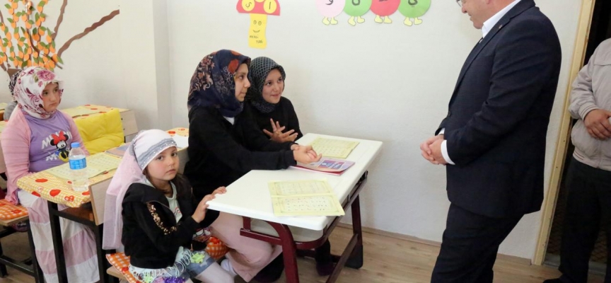 Bahçeşehir Mahallesi Camisinde açılan Yaz Kur'an Kursu'nu ziyaret eden Polat, öğrencilerle bir süre sohbet etti, okudukları duaları dinledi.