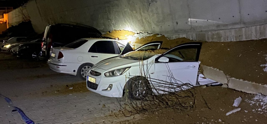 Çapanoğlu Mahallesi Aynalı Körük Sokak'ta Ravza Apartmanı'nın istinat duvarı park halindeki 11 aracın üzerine çöktü.