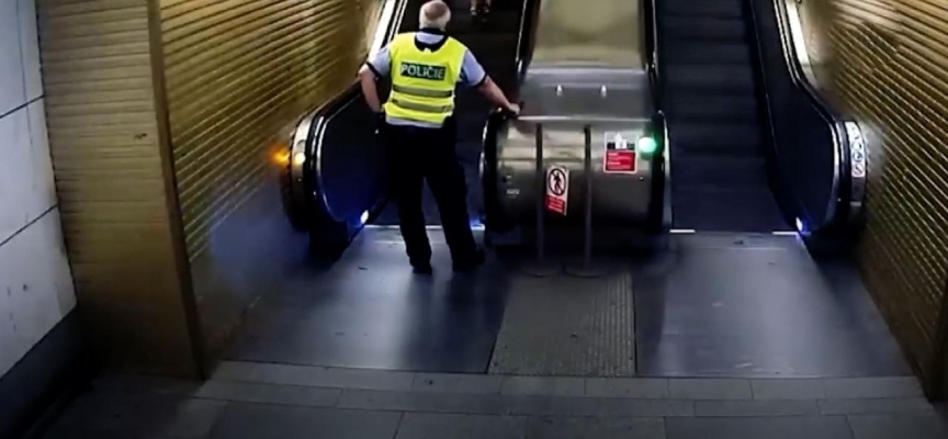 Görüntülerde, uzun süre polisten kaçan hırsızın ters bindiği yürüyen merdivende gücünün iyice tükendiği, bunu fark eden polisin ise sadece yürüyen merdivenin başında bekleyerek kaçmaktan yorulan hırsızı yürüyen merdivenin kendisine getirmesini beklediği görüldü.