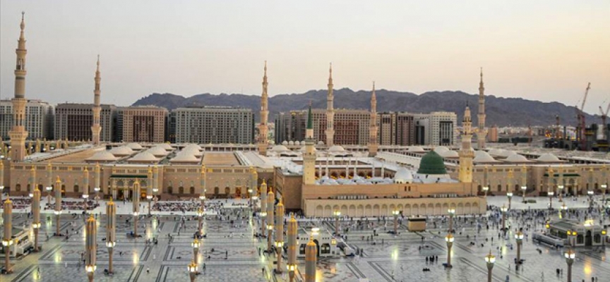 Kutsal topraklardan dönüşe hazırlanan hacılardan Medine'de bulunanlar, cuma namazını Hazreti Muhammed'in inşaatında bizzat çalıştığı Mescid-i Nebevi'de eda etti.